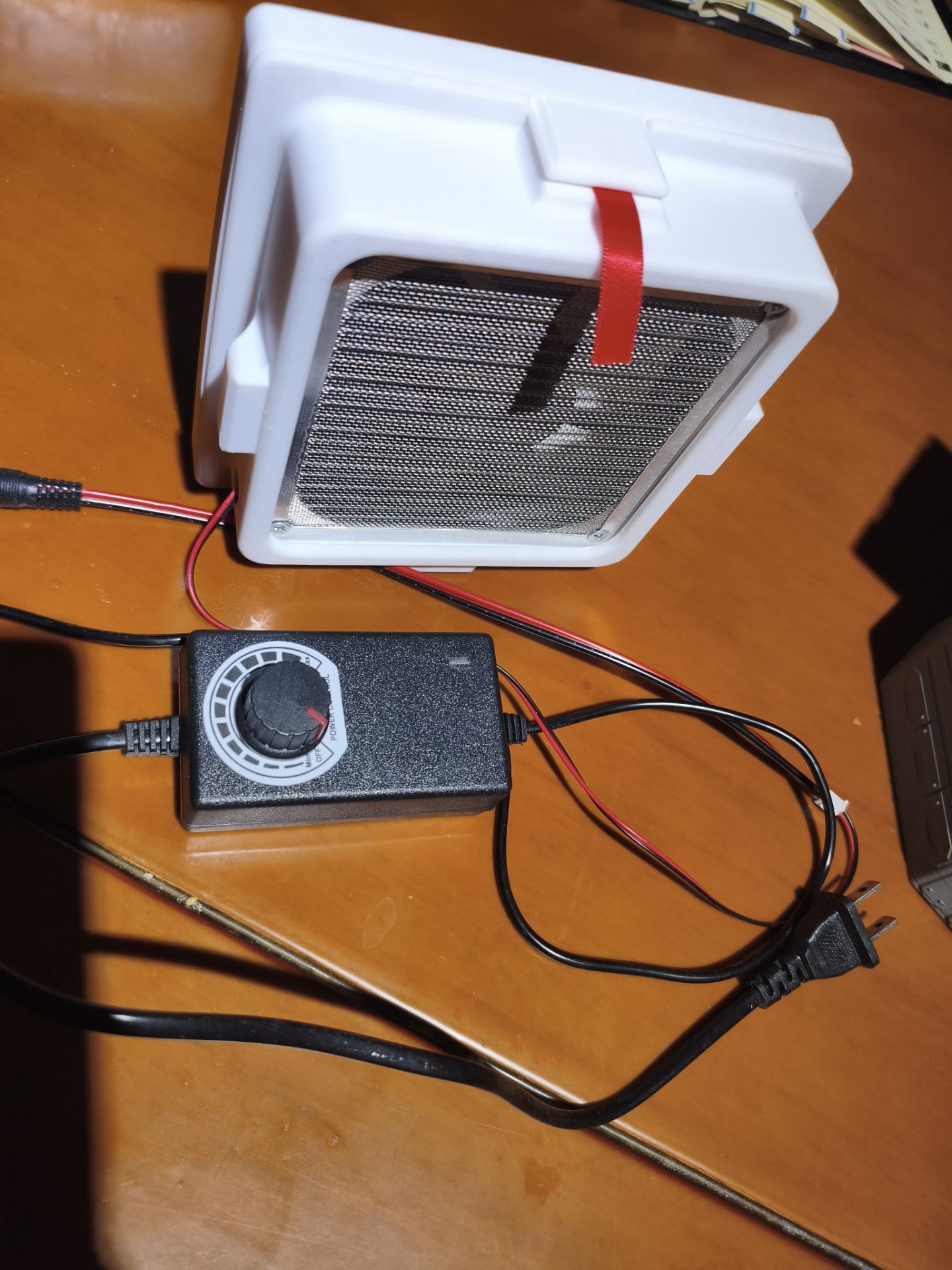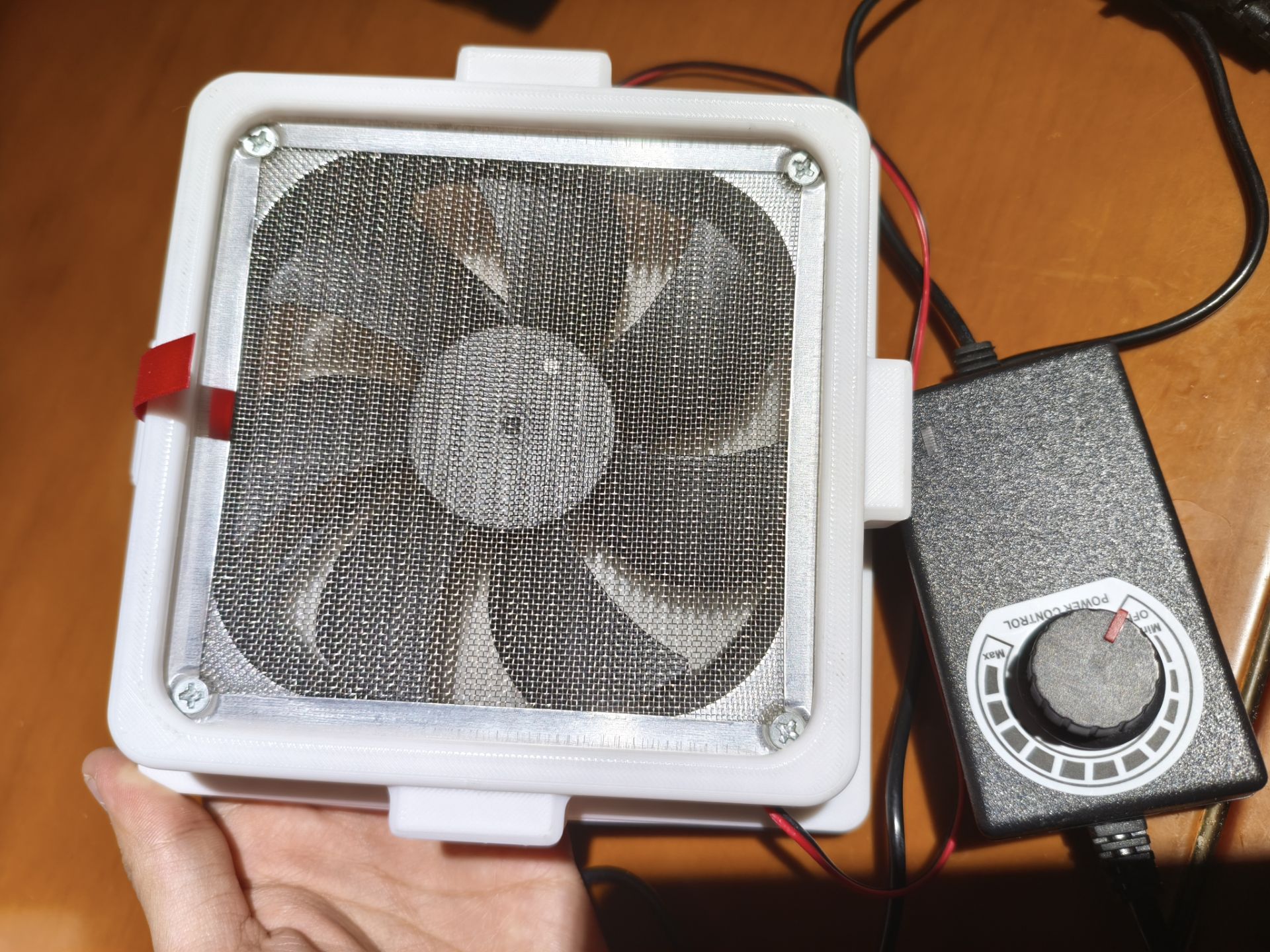 作品来源 桌面打磨、焊接电路板时会产生粉尘,但当时缺少合适的小型吸风设备,因此为解决这一需求而设计。2023年末完成。